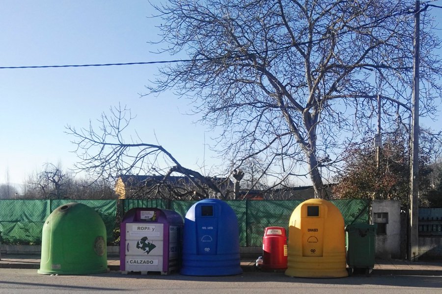 Contenedores de reciclaje en la calle los Paleros de Camponaraya.