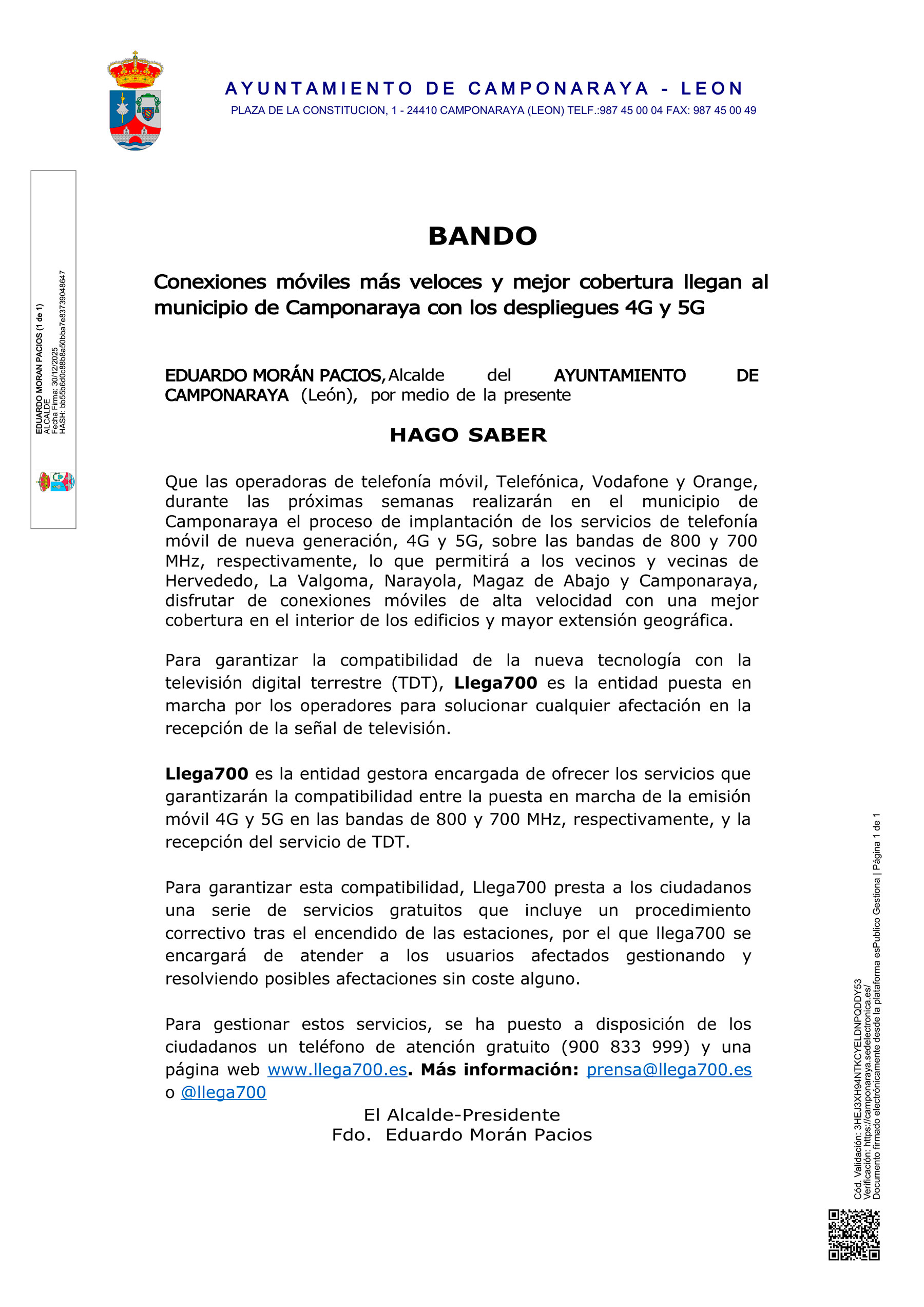 Conexiones móviles más rápidas y mejor cobertura llegan a Camponaraya